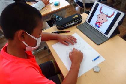 ガイドブックやタブレットを参考にしながら、それぞれのペースで学習を進めています。