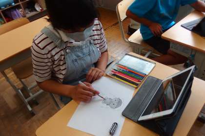 ガイドブックやタブレットを参考にしながら、それぞれのペースで学習を進めています。