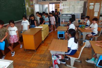 4年生の教室に、インタビューをするために2年生がやってきました。