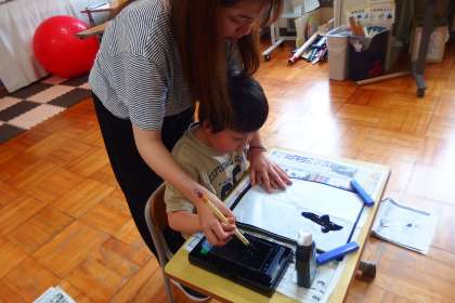 特別支援学級の書写の授業です。