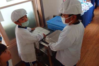 給食の配膳の様子です。