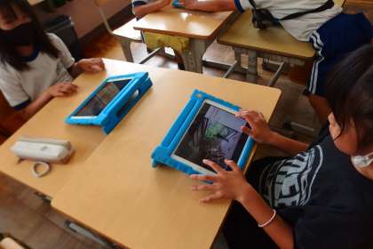 7月14日の東広瀬小学校(93) 公開日 2023/07/23 更新日 2023/07/23 活動の様子 3年生の総合的な学習の時間です。 矢作川のアユについてタブレットにまとめたことをペアやグループで発表し合っていました。
