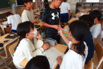 6年生が会議中。 みんなで話し合い、聞き合い、教え合い、学び合い。