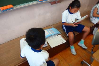 課題のチェックをしている4年生です。