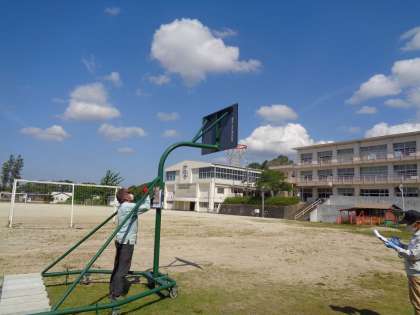 【安心・安全】遊具点検 公開日 2023/08/04 更新日 2023/08/04 校長室から 子ども達が安全に運動場の遊具を使用できるように、業者による安全点検を5月に実施しました。 運動場にあるすべての遊具をひとつずつ、丁寧に点検してくださいました。 遊具だけでなく、ガスや電気設備、プールのろ過装置、非常警報器具など、業者による様々な定期点検が行われています。