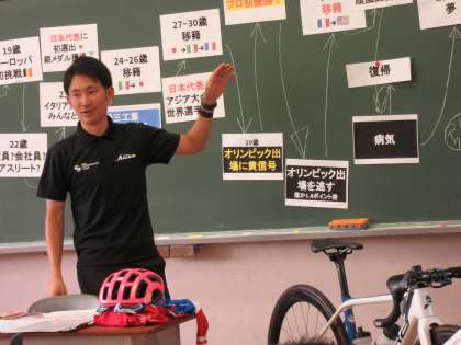 7月に5年生は、自転車選手としてワールドツアーに出場した中根英登さんによる夢の教室に参加しました。