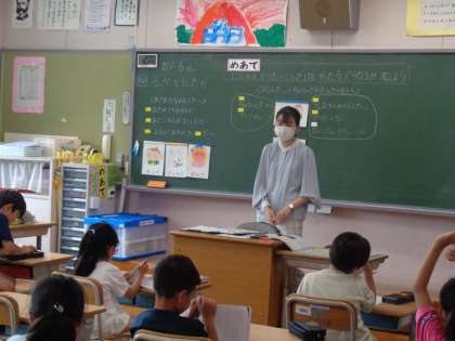 6月の2年生の道徳科の様子です。黒板には「だい6かい」と書かれてありました。