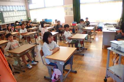 夏休み明けの全校集会は、タブレットのTeamsを使って、リモートで実施しました。