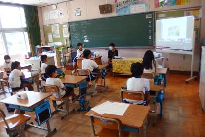 夏休み明けの全校集会は、タブレットのTeamsを使って、リモートで実施しました。