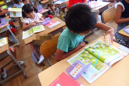 1年生の算数の授業です。 デジタル教科書で示された問題に取り組んでいます。