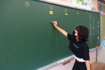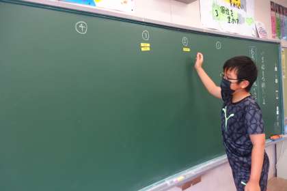 6年生の国語の授業です。 考えをそれぞれが発表をしてシェアし合い、話し合い、学び合いです。