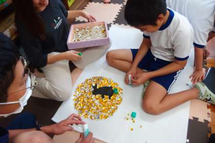 特別支援学級の授業です。 みんなで協力、かかわり合い、学び合いです。