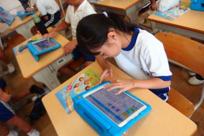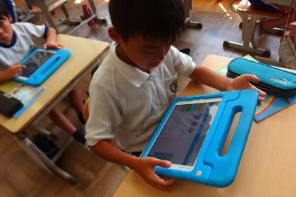 タブレットの発表ノートに英会話の原稿をまとめました。