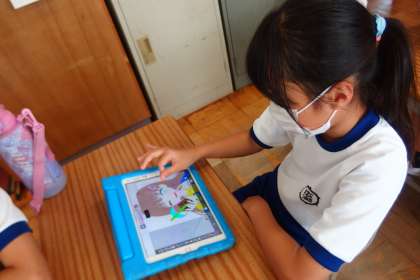 タブレットのアプリで復習をしているところです。