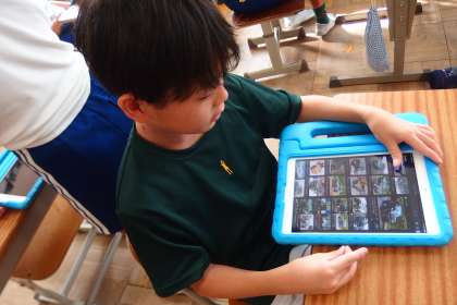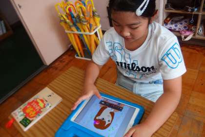 タブレットのアプリで復習をしているところです。