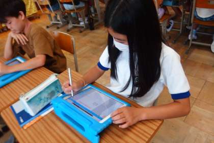 9月11日の東広瀬小学校(29) 公開日 2023/09/16 更新日 2023/09/16 活動の様子 4年生の算数の授業です。 割り算の解き方について、一人一人がタブレット上に記入、表現していきます。