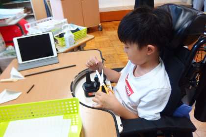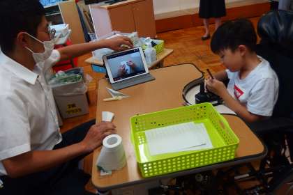タブレットで動画を見て参考にしながら工作を進めています。