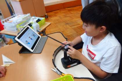 タブレットで動画を見て参考にしながら工作を進めています。
