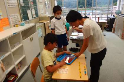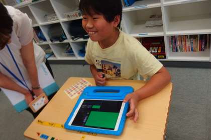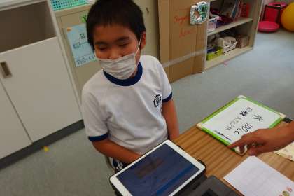 タブレットを使って学習中。
