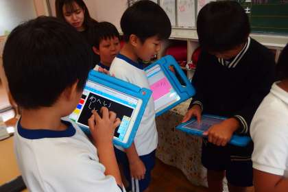 色を顕す表現の言語活動を、タブレットの助けを借りながら進めているところです。