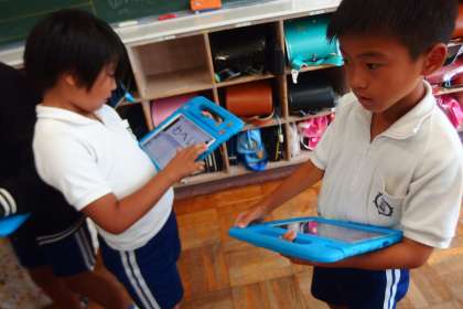 色を顕す表現の言語活動を、タブレットの助けを借りながら進めているところです。