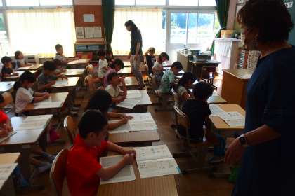 9月13日の東広瀬小学校(15) 公開日 2023/09/20 更新日 2023/09/20 We Love 東広瀬(地域学校共働本部) 1年生の書写の授業です。 定期的に来校していただき、地域の方々との学び合いの時間です。