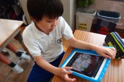 給食のメニューについてタブレットで調べている4年生です。