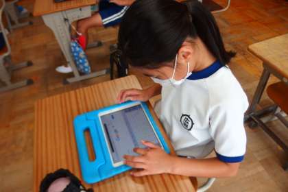 給食のメニューについてタブレットで調べている4年生です。