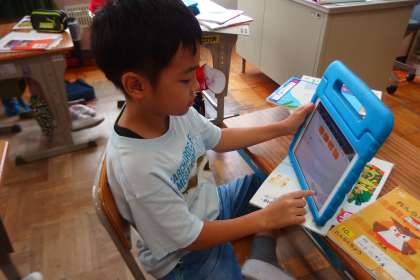 写真はデジタルドリル(Qubena)に取り組んでいる4年生です。