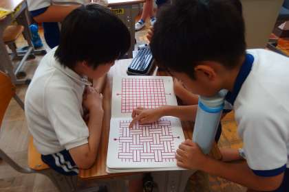 私も初めて見ましたが、目の不自由な方が楽しめるように、点字で迷路が印刷されていました。