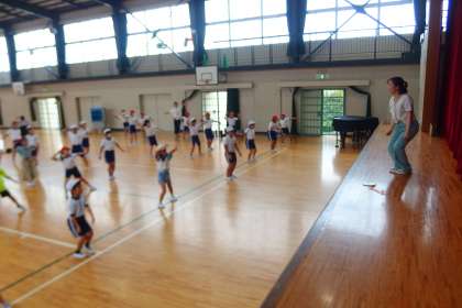 写真は3年生と4年生の体育の授業です。