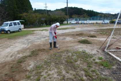 毎日、何人もの方々が運動場の草取りのために来校しています。