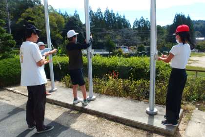 写真は運動会の準備をする6年生授業です。