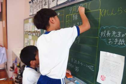 まだまだ9月分の更新が続きます。 写真は連絡を黒板に記入する4年生です。