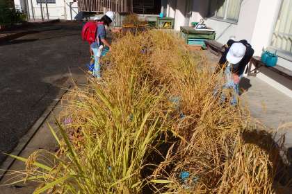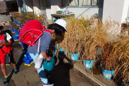5年生が育ててきたバケツ稲も、いよいよ収穫の時期を迎えそうです。