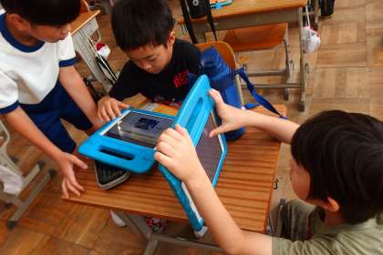 まだまだ9月分の更新が続きます。 写真はタブレットで復習をしている4年生です。