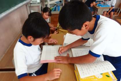 まだまだ9月分の更新が続きます。 写真はタブレットで復習をしている4年生です。