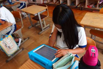 まだまだ9月分の更新が続きます。 写真はデジタルドリル(Qubena)で復習をしている4年生です。