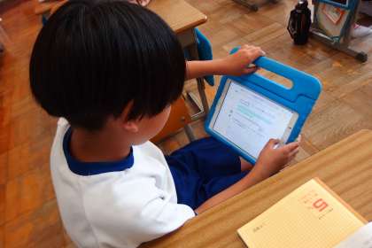 まだまだ9月分の更新が続きます。 写真はデジタルドリル(Qubena)で復習をしている4年生です。