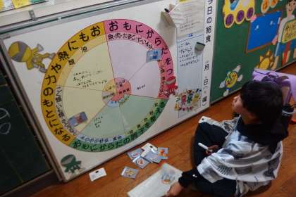 給食の献立情報や栄養情報を記入している保健給食委員です。
