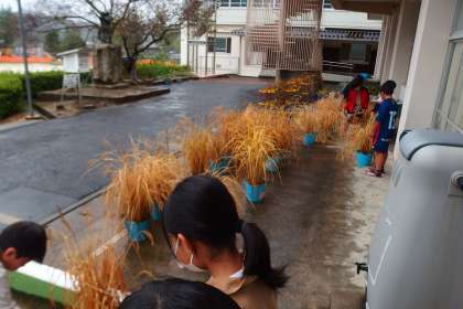 5年生のバケツ稲は収穫間近です。 BIAI