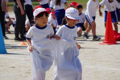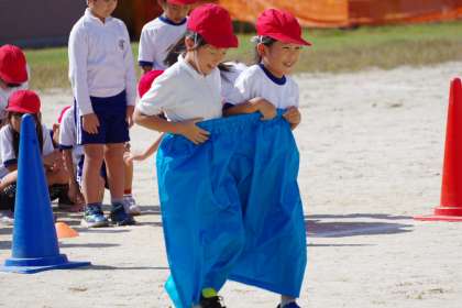 低学年のデカバンリレーの練習です。