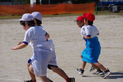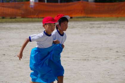 低学年のデカバンリレーの練習です。