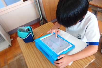 デジタルドリル(Qubena)で復習をしている4年生です。