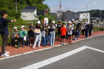 ふれあいまつりの準備のために交流館に向かう6年生。