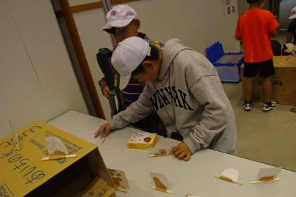 ふれあいまつりの準備をする6年生。
