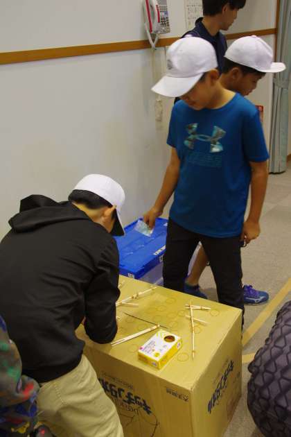 ふれあいまつりの準備をする6年生。