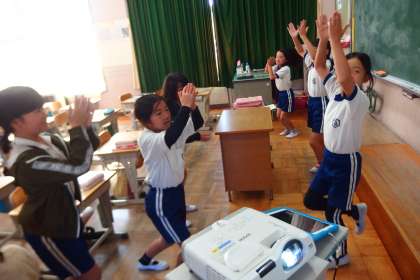 教室で表現の練習中です。