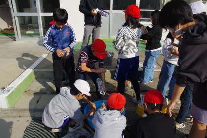 秋晴れの青空のもと、やきいもパーティーを実施しました。