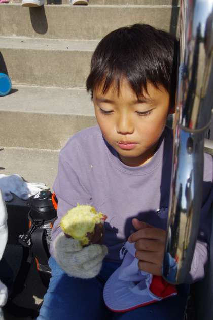 秋晴れの青空のもと、やきいもパーティーを実施しました。